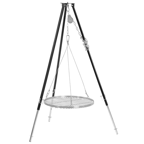 BBQ-Toro Dreibein Grill mit Ø 50 cm Grillrost | 110-175 cm | Schwarz | Dreibein für Schwenkgrill | Eisen Dreibein Gestell, Grillständer mit Rost | Hängegrill, Grillgestell, Dreibeingrill