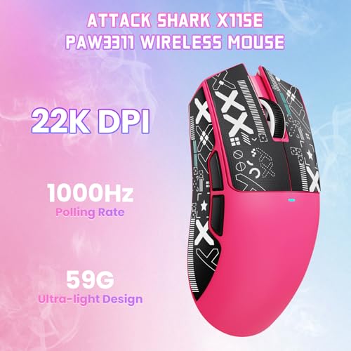 ATTACK SHARK X11 SE Kabellose Gaming-Maus, PixArt PAW3311 Gaming-Sensor, BT/2.4G Wireless/Kabelgebunden, 22000 DPI, 65 Stunden Akku, Büro- und Gaming-Maus für Win11/Xbox/PS/Mac (Beerenrot + Klebeband)
