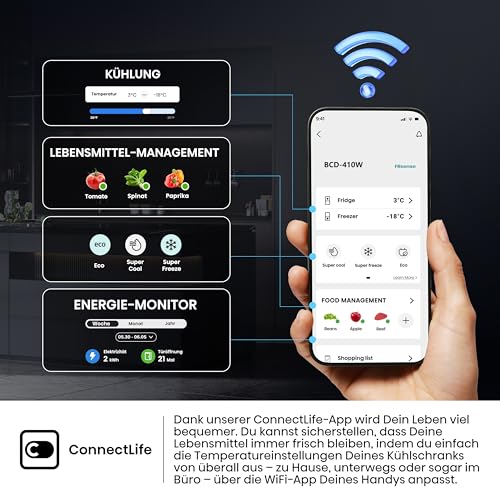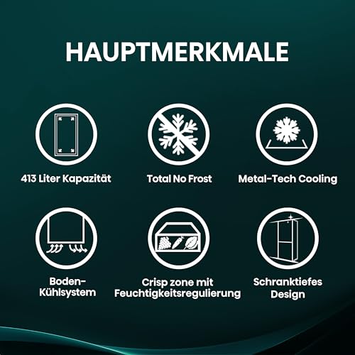 Hisense RB5P410SACC Kühl-Gefrierkombination/Freistehend/EEK: C/34 dB/283 L/Große Kapazität/Boden-Kühlsystem/Deep Freeze/Moisture Fresh Crisper/Metal-Tech Cooling/0°C Fresh Box/HxBxT:203 x59,5x 65,8cm