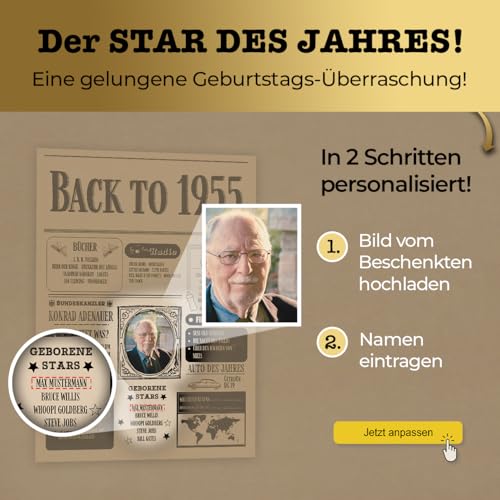 GiveSmiles Personalisierte Karte & Geschenk zum 70. Geburtstag Frau – Back in 1955 Karte zum 70. Geburtstag für Mann oder 70. Geburtstagskarte für Frau