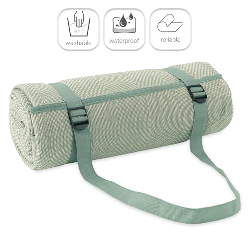 Paco Home Picknickdecke Outdoor wasserdicht - Faltbar & leicht, Sand- & schmutzabweisend - Stranddecke Camping Garten Festival Decke, Farbe:Grün, Größe:200x200cm