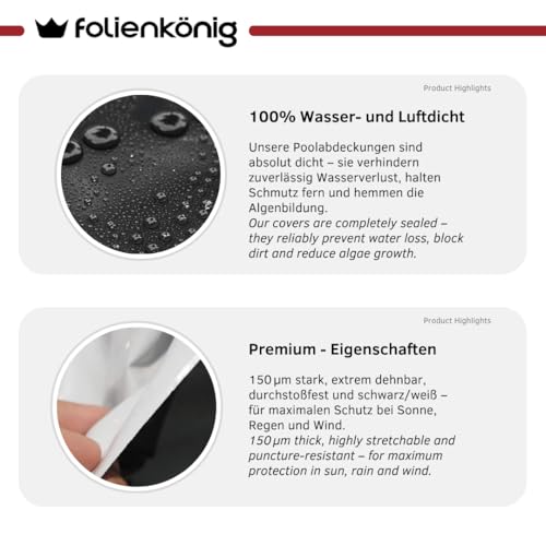 Premium Poolplane 5x5m, UV-beständig, reißfest, lichtdicht, wasserdicht, schwarz/weiß, algenfrei - Hochwertige Abdeckplane für Pool und Garten, Silofolie, Abdeckfolie, Gartenfolie, (Größe wählbar)