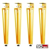 SOTECH 4er Set Tischbein ColorLine in F-Form Höhe 464 mm verstellbar gelb konisch zulaufend von 70 auf 40 mm mit Klemmschraube (ohne Bohren) für Beistelltisch, Couchtisch, Bank