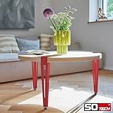 SOTECH Tischbein ColorLine in F-Form Höhe 464 mm verstellbar rot konisch zulaufend von 70 auf 40 mm mit Klemmschraube (ohne Bohren) für Beistelltisch, Couchtisch, Bank