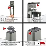 SOTECH 4er Set Tischbein ColorLine in F-Form Höhe 745 mm verstellbar grau konisch zulaufend von 70 auf 40 mm mit Klemmschraube (ohne Bohren) für Küchentisch, Esstisch, Bürotisch