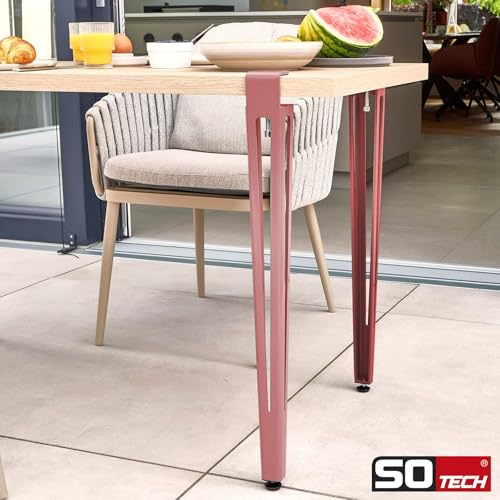 SOTECH 4er Set Tischbein ColorLine in F-Form Höhe 745 mm verstellbar rosa konisch zulaufend von 70 auf 40 mm mit Klemmschraube (ohne Bohren) für Küchentisch, Esstisch, Bürotisch