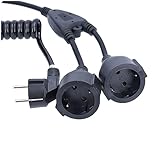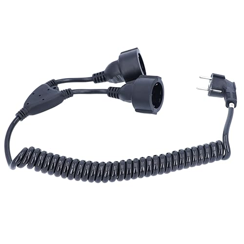 as - Schwabe Spiralkabel 2 m auf 4 m - 2 Schuko Steckdosen - 230V, 16A - dehnbare Spiralleitung mit Schutzkontaktwickelstecker - Verlängerungskabel - 2-fach Steckdosen - IP20 - schwarz, 70433