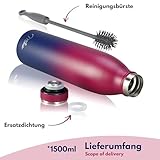 Milu Edelstahl Trinkflasche 350ml, 500ml, 750ml, 1L, 1,5L – Thermosflasche für Kinder Erwachsene auslaufsicher Isolierflasche Kohlensäure geeignet– inkl. Reinigungsbürste (Berry Blau, 1500ml)