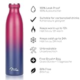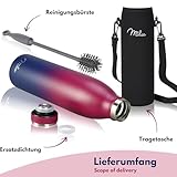 Milu Edelstahl Trinkflasche 350ml, 500ml, 750ml, 1L, 1,5L – Thermosflasche für Kinder Erwachsene auslaufsicher Isolierflasche Kohlensäure geeignet– inkl. Reinigungsbürste (Berry Blau, 750ml)