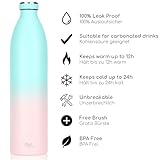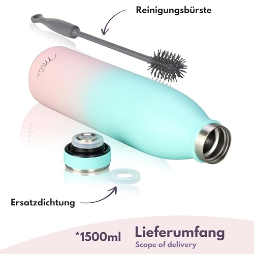 Milu Edelstahl Trinkflasche 350ml, 500ml, 750ml, 1L, 1,5L – Thermosflasche für Kinder Erwachsene auslaufsicher Isolierflasche Kohlensäure geeignet– inkl. Reinigungsbürste (Mint Pink, 1500ml)