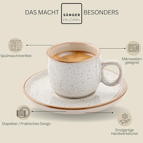 Sänger Rio Creme | Espressotassen Set 12 teilig, Tassen Set 6 Personen, Espresso- & Mokkatassen, kratz- spülmaschinen- mikrowellenfest, 6xTassen & 6xUntertassen cremefarben 80 ml | VALUE COLLECTION