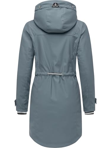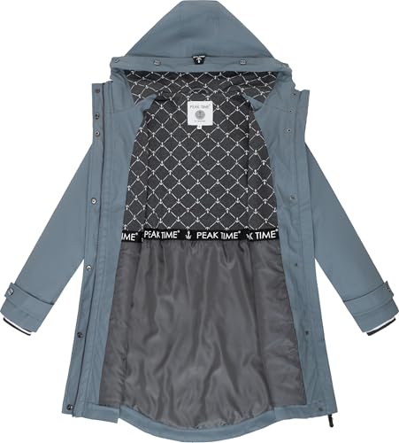 Regenjacke PEAK TIME L60042, Damen, Gr. S (36), stahlblau, Obermaterial: 100% Polyurethan, Futter 1: 100% Polyester, Futter 2: 60% Baumwolle, 40% Polyester, Wattierung: 100% Polyester, tailliert ca. Mitte Oberschenkel, Ärmel ohne Ärmelschlitz normaler S