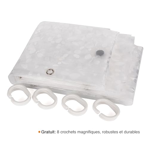 WELTRXE Duschvorhang Anti-Schimmel mit Gewicht Magnet unten, 0.2mm [120x200cm] Wasserdicht Antibakteriell Eva Vorhang für Dusche und Badewanne, 3D Steinmuster, inkl. 8 super Duschvorhangringen Kinder