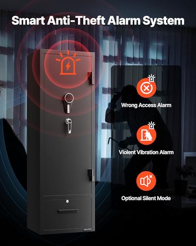VEVOR Gewehrschrank Langwaffenschrank für Gewehre & Pistolen, feuerfester Gewehrtresor mit 2 Munitionsfächern & 2 verstellbaren Regalen, großer Waffenschrank mit Schlüssel & Passwortschloss