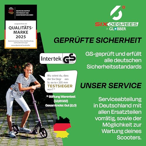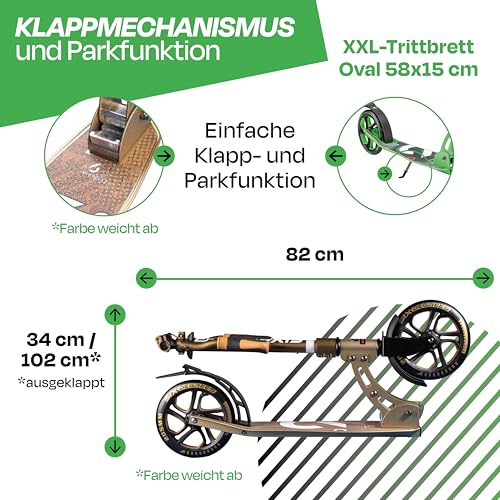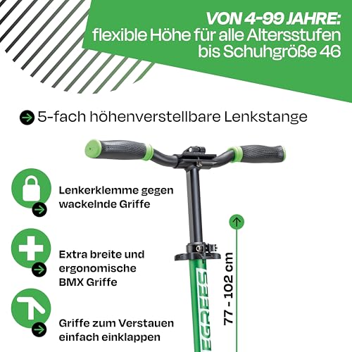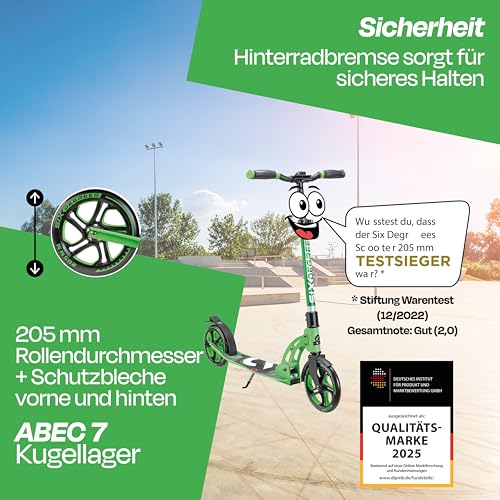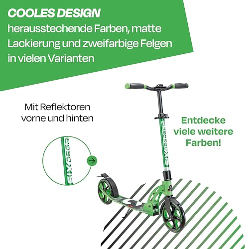 SIX DEGREES Aluminium Scooter mit Klappmechanismus u. Ständer, 205 mm, höhenverstellb., GS-geprüft, hellgrün, TESTSIEGER