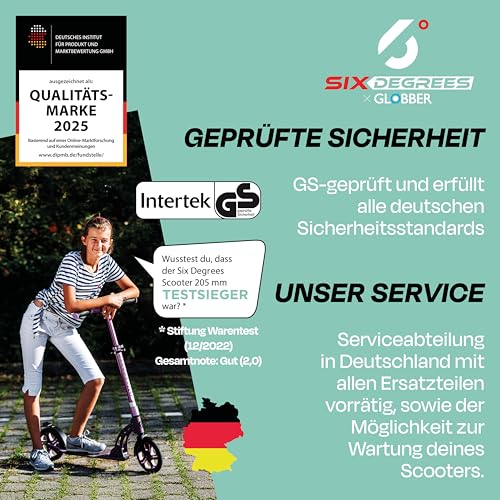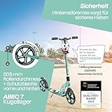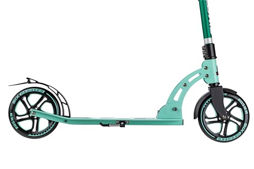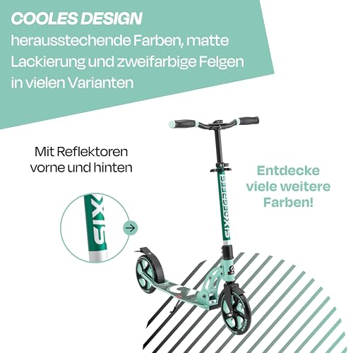SIX DEGREES Aluminium Scooter mit Klappmechanismus u. Ständer, 205 mm, höhenverstellb., GS-geprüft, Mint, TESTSIEGER