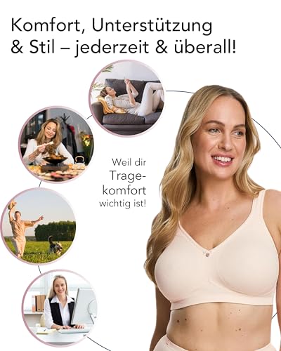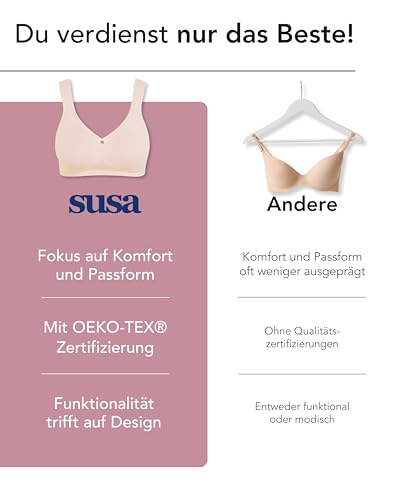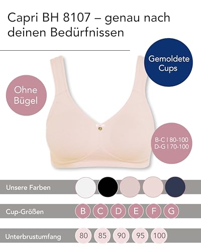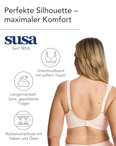 SUSA BH Damen ohne Bügel - Capri 8107 - Größen B-G - BH mit Soft-Touch-Unterbrustband - Gemoldete Cups mit Stützblenden & verstellbaren Träger - Glattes, leichtes Material - Bequemer T Shirt BH