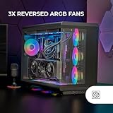 Mars Gaming MC-REV, Gaming-Gehäuse ATX, Doppeltes Gehärtetes Glas, 3X Inverse 12cm ARGB-Lüfter, Vertikaler GPU-Einbau, PC-Tower mit Unterstützung für Flüssigkeitskühlung bis zu 360mm, Schwarz