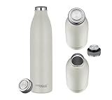 THERMOcafé by THERMOS TC BOTTLE beige matt 0,75l, Isolierflasche aus Edelstahl, kohlensäurefest, 12h heiß 24h kalt, Auslaufsicher, für Schule, Unterwegs & Büro