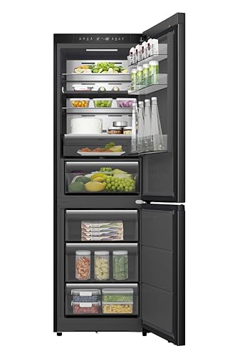Hisense RB5K330GSFC Kühl-Gefierkombination/Freistehend/Perfekt KitchenFit/Dunkler Innenraum/EEK C/35 dB/No Frost/330 L Volumen/WiFi/Metal Tech/Multi Airflow/HxBxT 185,6x59, 5x 60 cm/Schwarz Edelstahl