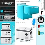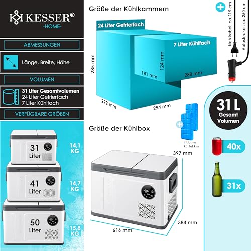KESSER® Kompressor Kühlbox 2in1 Doppelzone Kühl & Gefrierfach 31 Liter elektrische Gefrierbox mit 2x Kühlakkus & LED-Touch-Bedienung | Kühlschrank Kühlung bis -20 °C für Camping, Auto, Lkw 12/24V 230V