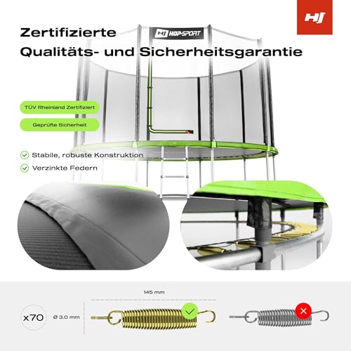 Hop-Sport Trampolin Outdoor - Ø 244/305/366/427/488 cm - Trampolin mit außenliegenden Sicherheitsnetz, Stabiler Rahmenkonstruktion & Sicherheitszertifikaten - Komplettset mit Leiter (366 cm)