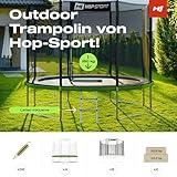 Hop-Sport Trampolin Outdoor - Ø 244/305/366/427/488 cm - Trampolin mit außenliegenden Sicherheitsnetz, Stabiler Rahmenkonstruktion & Sicherheitszertifikaten - Komplettset mit Leiter (305 cm)