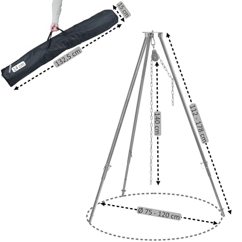 BBQ-Toro Dreibein Grill mit Ø 60 cm Grillrost, 112 - 178 cm, Dreibein für Schwenkgrill, Grillgestell