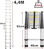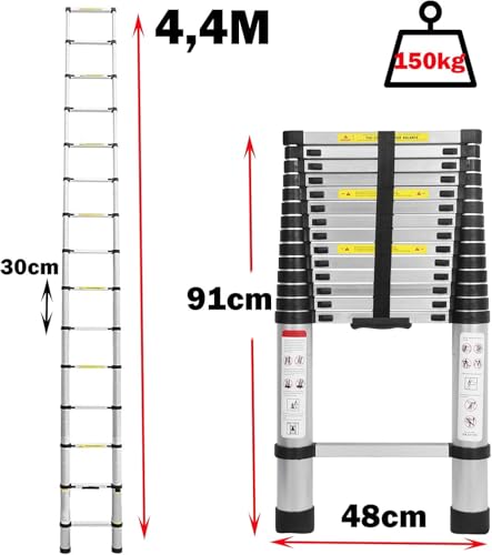 2,6M/3,2M/3,8M/4,4M/5M Alu-Teleskopleiter Aluminium Klappleiter Rutschfester Sicher Aluleiter Mehrzweckleiter Stehleiter Ausziehleiter Tragbar Leichte Leiter 150 kg Belastbarkeit