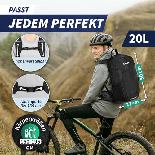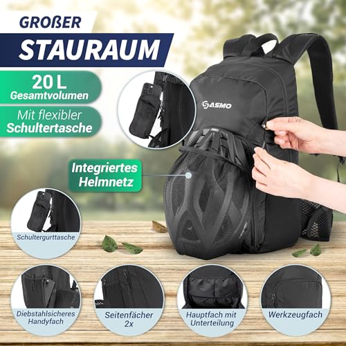 SASMO® Fahrradrucksack 20l mit Thermofach & Helmnetz | MTB Rucksack | Fahrrad Rucksack - inkl. Regenschutz & Handytasche | Trinkrucksack Fahrradrucksack Herren & Damen