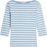 Tommy Hilfiger Damen Slim Cody Boat-NK 3/4SLV WW0WW40589 L/S T-Shirt, Blau (Clear Water/Ecru STP), L, Blau (Clear Water/Ecru STP), L