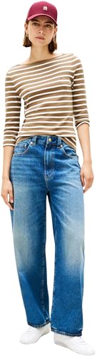 Tommy Hilfiger Damen Slim Cody Boat-NK 3/4SLV WW0WW40589 L/S T-Shirt, Braun (Nordic Taupe/Ecru STP), L, Braun (Nordic Taupe/Ecru STP), L