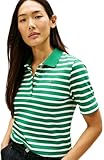 Tommy Hilfiger Women's 1985 REG Pique Polo SS WW0WW43224 S/S Polo, Green (Nouveau Green/Ecru STP), XXL, Grün (Nouveau Green/Ecru STP), XXL