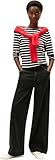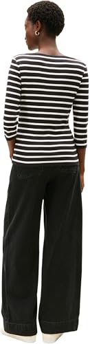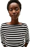 Tommy Hilfiger Damen Slim Cody Boat-NK 3/4SLV WW0WW40589 L/S T-Shirt, Schwarz (Black/Ecru STP), L, Schwarz (Schwarz/Ecru STP), L