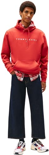 Tommy Jeans Herren TJM REG Linear Logo Hoodie EXT DM0DM20746 Pullover Hoodie, Rot (Terracotta Red), S, Rot (Terracotta Red), S