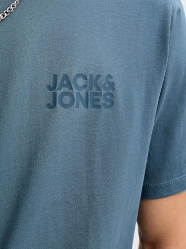 Rundhalsshirt JACK & JONES JJECORP mit Logo-Print und klassischem Rundhals, Herren, Gr. S, blau mirage detail:small print, Single Jersey, Obermaterial: 100% Baumwolle, bedruckt, regular fit taillenbedeckt, Rundhals, Shirts Rundhalsshirt