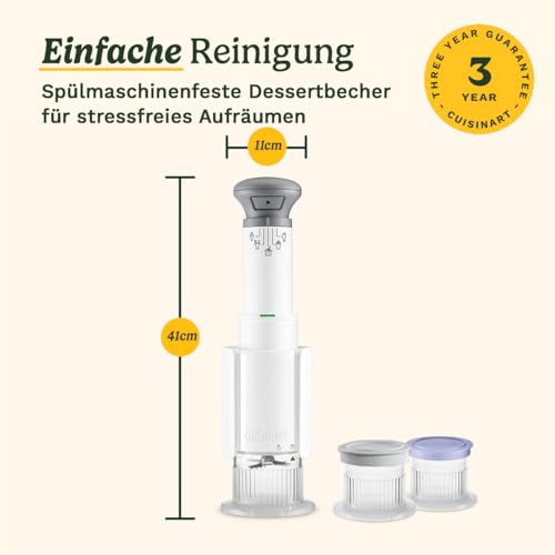 Cuisinart FreezeWand Eismaschine – 5in1 Eiscreme, Sorbet, Milchshake, Slushie – 3 Becher – Vegan, laktosefrei, proteinreich – 5 Min. Zubereitung – Kompakt & tragbar, Weiß/Grau