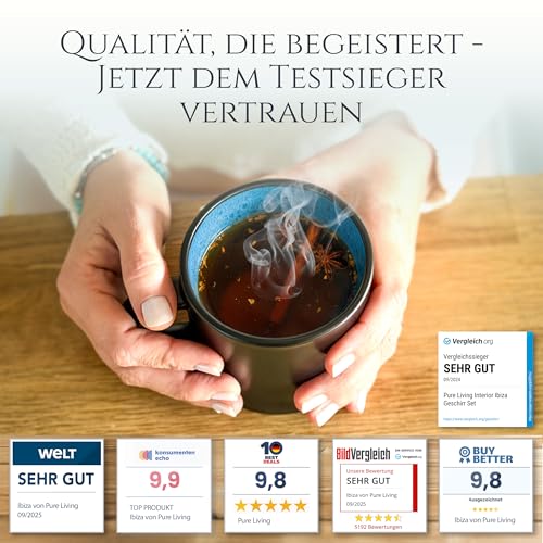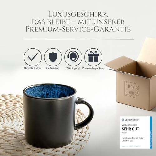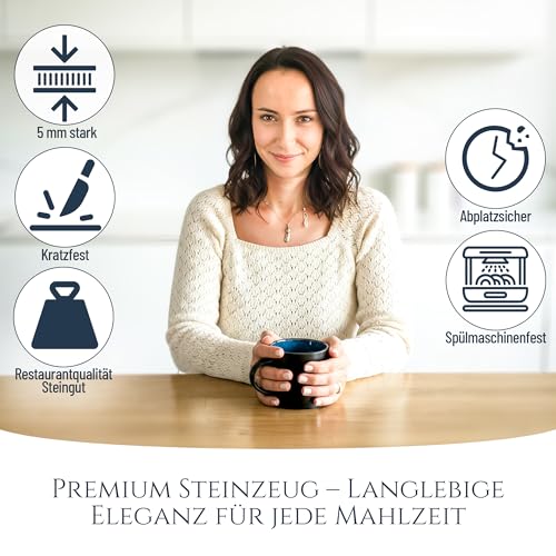 Steingut kleine Tassen 6 Pers. Ibiza Hochwertiges Mediterranes TEST SEHR GUT Tassen Set, Spülmaschinen-, Mikrowellen- und Kratzfest - Stylisches Tee- und Kaffeebecher Set - Pure Living in Tiefblau