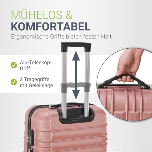 Juskys Hartschale Kofferset Rom Reisekoffer 3 teilig - Zahlenschloss, 360° Rollen, Teleskopgriff - Rosa