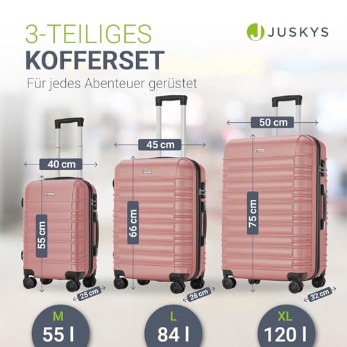 Juskys Hartschale Kofferset Reisekoffer 3 teilig - Zahlenschloss, geräuscharme 360° Rollen groß, Teleskopgriff, leicht - Koffer in Rosa