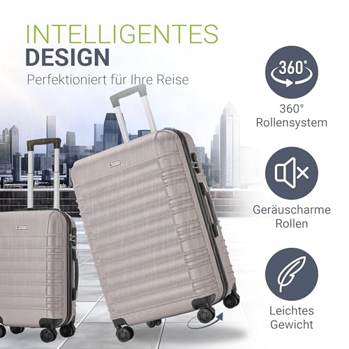Juskys Hartschale Kofferset Rom Reisekoffer 3 teilig - Zahlenschloss, 360° Rollen, Teleskopgriff - Champagner