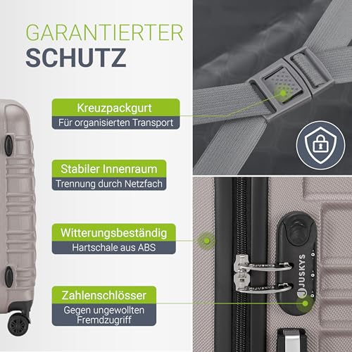 Juskys Hartschale Kofferset Reisekoffer 3 teilig - Zahlenschloss, geräuscharme 360° Rollen groß, Teleskopgriff, leicht - Koffer in Champagner