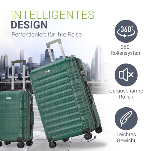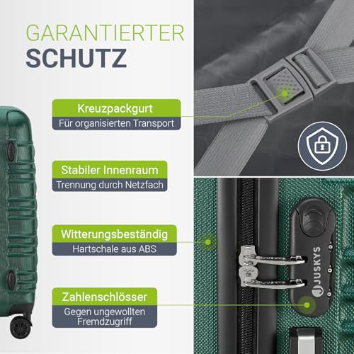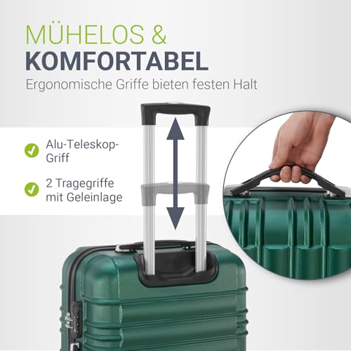 Juskys Hartschale Kofferset Rom Reisekoffer 4 teilig - Zahlenschloss, 360° Rollen - Dunkelgrün