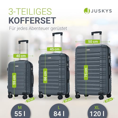 Juskys Hartschale Kofferset Reisekoffer 3 teilig - Zahlenschloss, geräuscharme 360° Rollen groß, Teleskopgriff - Anthrazit