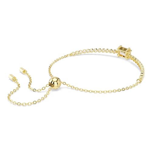 Swarovski Matrix Tennis Armband, Vergoldetes Damenarmband mit Weißen und Karamellfarbenen Zirkonia, Mit Kugelschiebeverschluss, Armbandlänge: 12-24 cm, Motivgröße: 0.6 x 0.9 cm