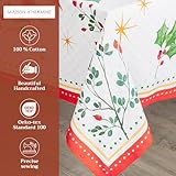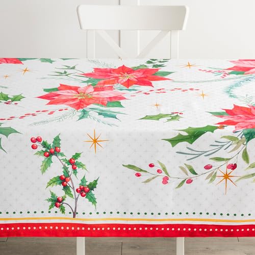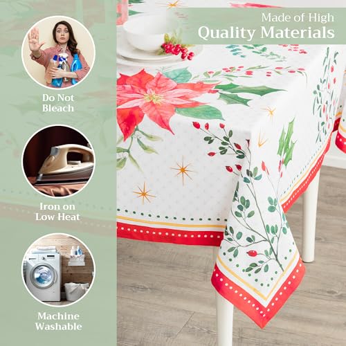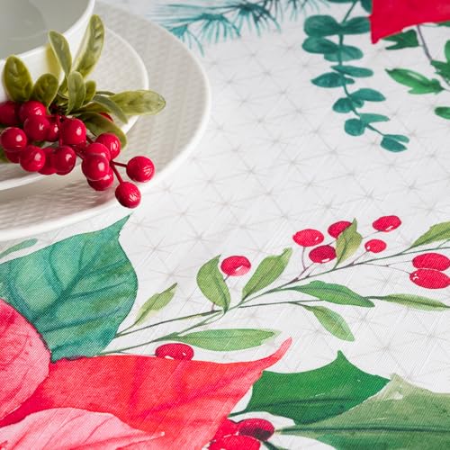 Maison d'Hermine Tischdecke Rechteckig 100% Baumwolle 220 cm x 160 cm Wiederverwendbar Alltagsgebrauch für Weihnachtsdekorationen Esszimmer Landhaus Zuhause Party Festlich (Poinsettia Christmas)
