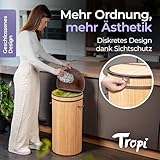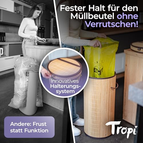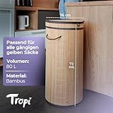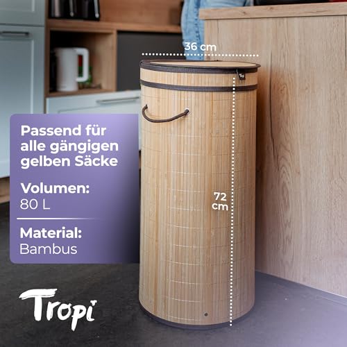 Tropi® Bambus Müllsackständer für Gelbe Säcke – 80L Gelber Sack Ständer mit Deckel & Sichtschutz – Ein großer, stilvoller & geruchsdichter Mülleimer für Deine Küche! (Rund)