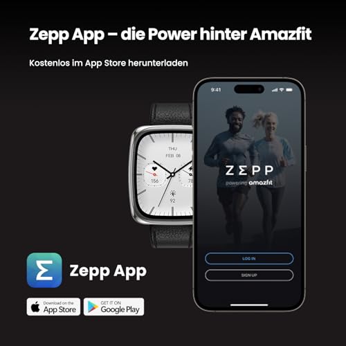 AMAZFIT Active 2 Square NFC Smartwatch Edelstahl Leder, 20 mm, Black