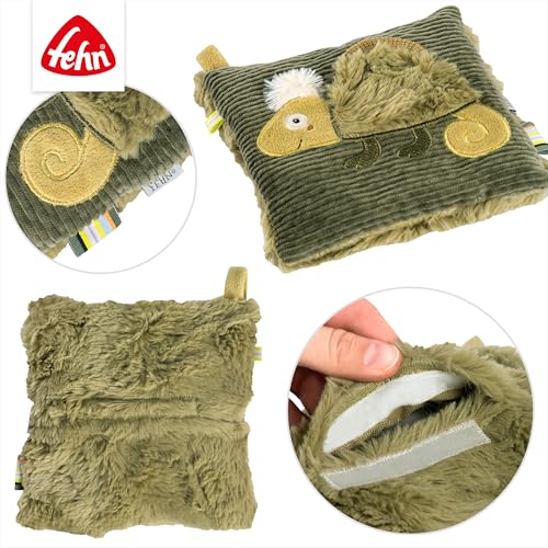 Fehn Kirschkernkissen Chamäleon – Kuschelkissen mit entnehmbarem Wärme-/ Kältesäckchen für Babys und Kleinkinder