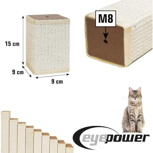 eyepower 15 cm Pfotenfreund: M8 Sisalstamm für Kratzbaum - 9 x 9 cm Ersatzstamm Eckig - 100% Sisal Stamm Kratzsäule - Kratzstamm für Katzen Stabil - Katzenkratzbaum Ersatzteile Sisalstämme Sisalsäulen
